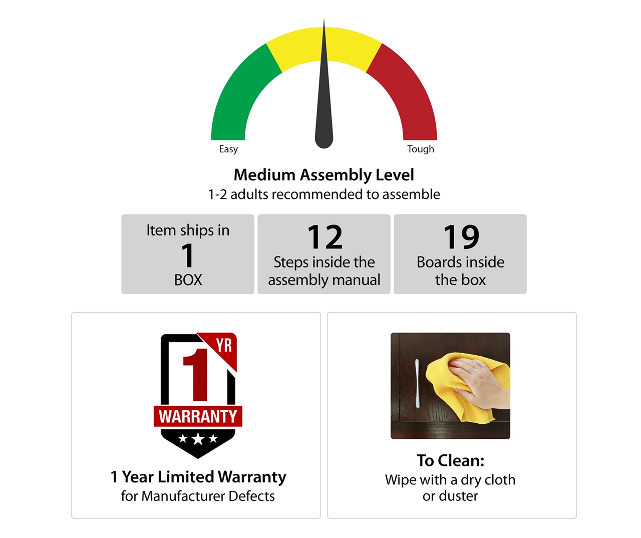 - Material: Metal, paper, particle board, MDF