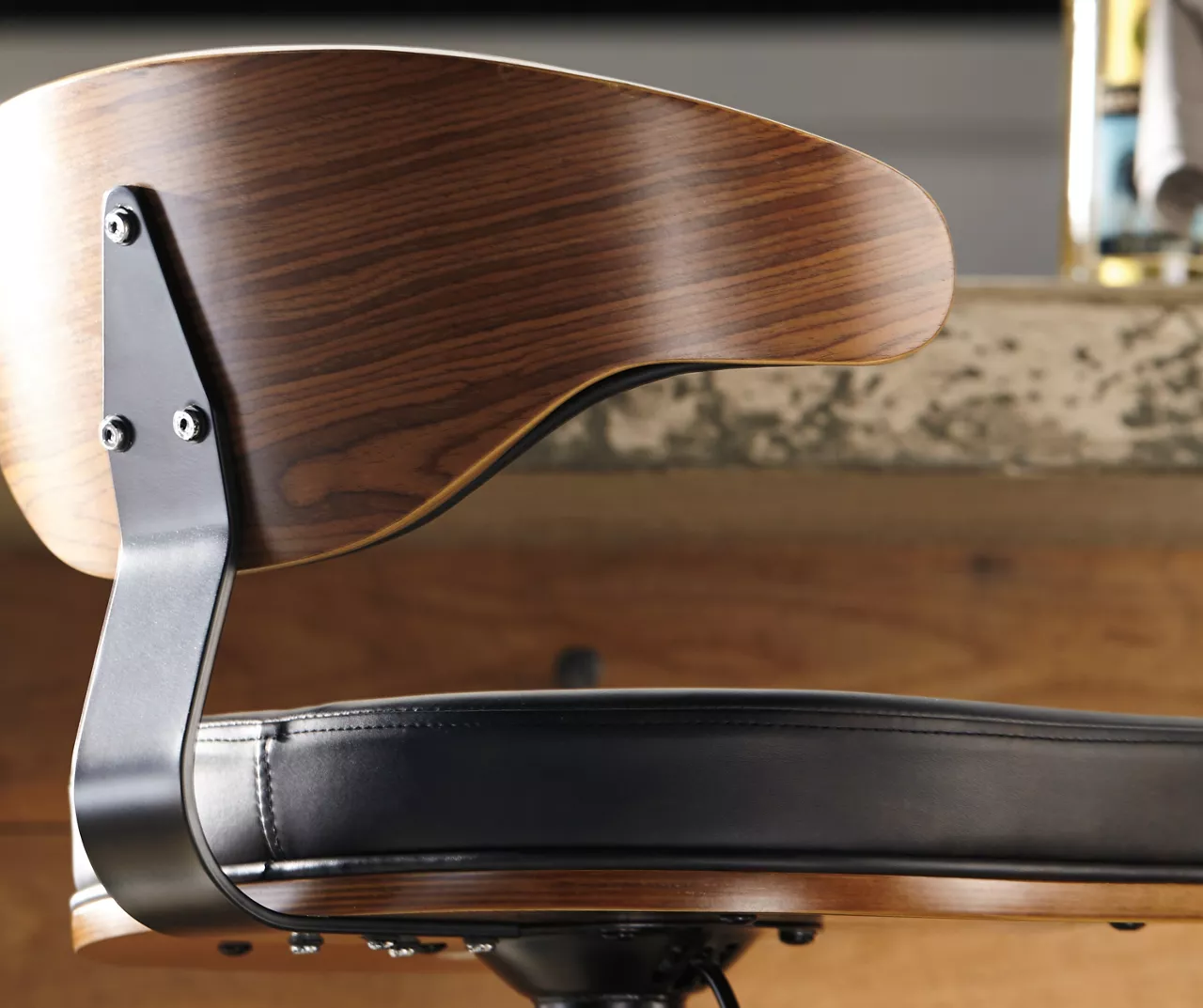 - Mid-century modern wood with faux leather barstool