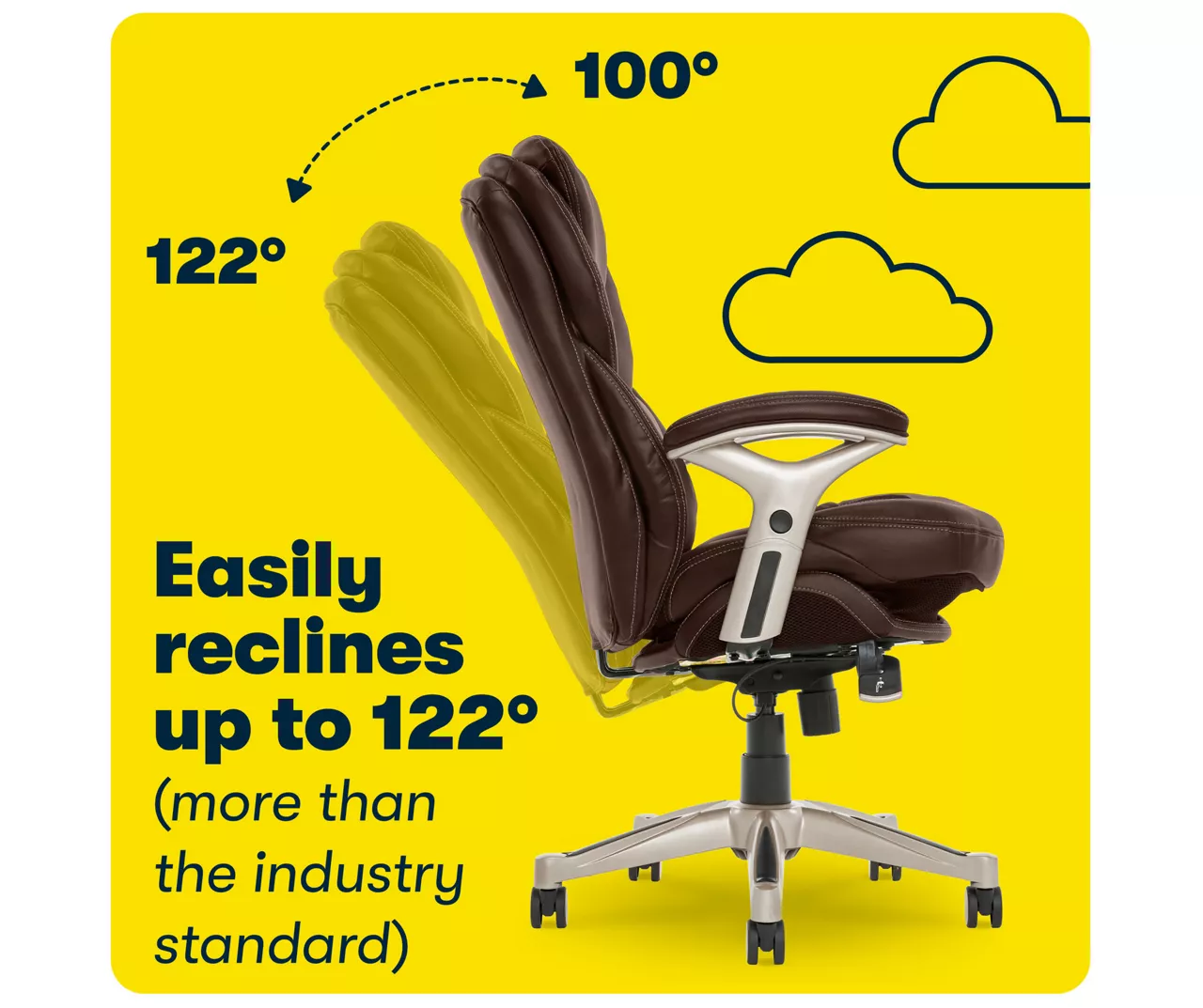Help promote strength and flexibility in your back while you work with the Serta Back in Motion Executive Office Chair. This ergonomic office chair helps users become more productive and efficient by maximizing lower back support and comfort while seated. Its unique Back in Motion Active Seat Technology swivels the lumbar forward, providing the same effects as a pelvic tilt exercise by promoting spinal movement and flexibility in your core. Push-button adjustable armrests and pneumatic height adjustment allow the leather office chair to be quickly and easily customized to find the right fit for you. The multi-layered cushions are soft yet supportive, so you’ll feel refreshed even after a long day.