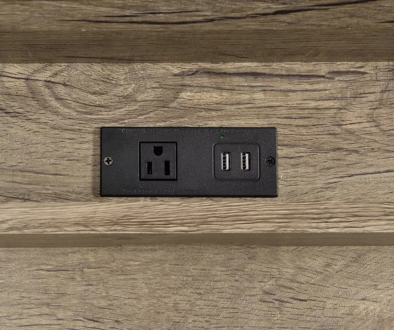 - Offers 2 USB ports and an electrical outlet in the back for easy charging