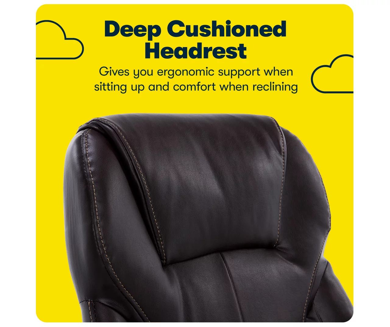From a brand that is synonymous with quality, comfort and style, the Serta Mitchell manager office chair is upholstered in soft and durable roasted chestnut brown PureSoft vegan leather. This chair features deep layered body pillows which offer the body a serene and tranquil seating experience. The contoured lumbar provides exceptional support for the lower back, while the sculpted arms have pillow soft pads which provide added hand, wrist and forearm comfort. The pneumatic gas lift adjusts the seat height by a simple flick of the lever. Pulling out the same handle will unlock the recline mechanism and allow you to lean back in comfort.
