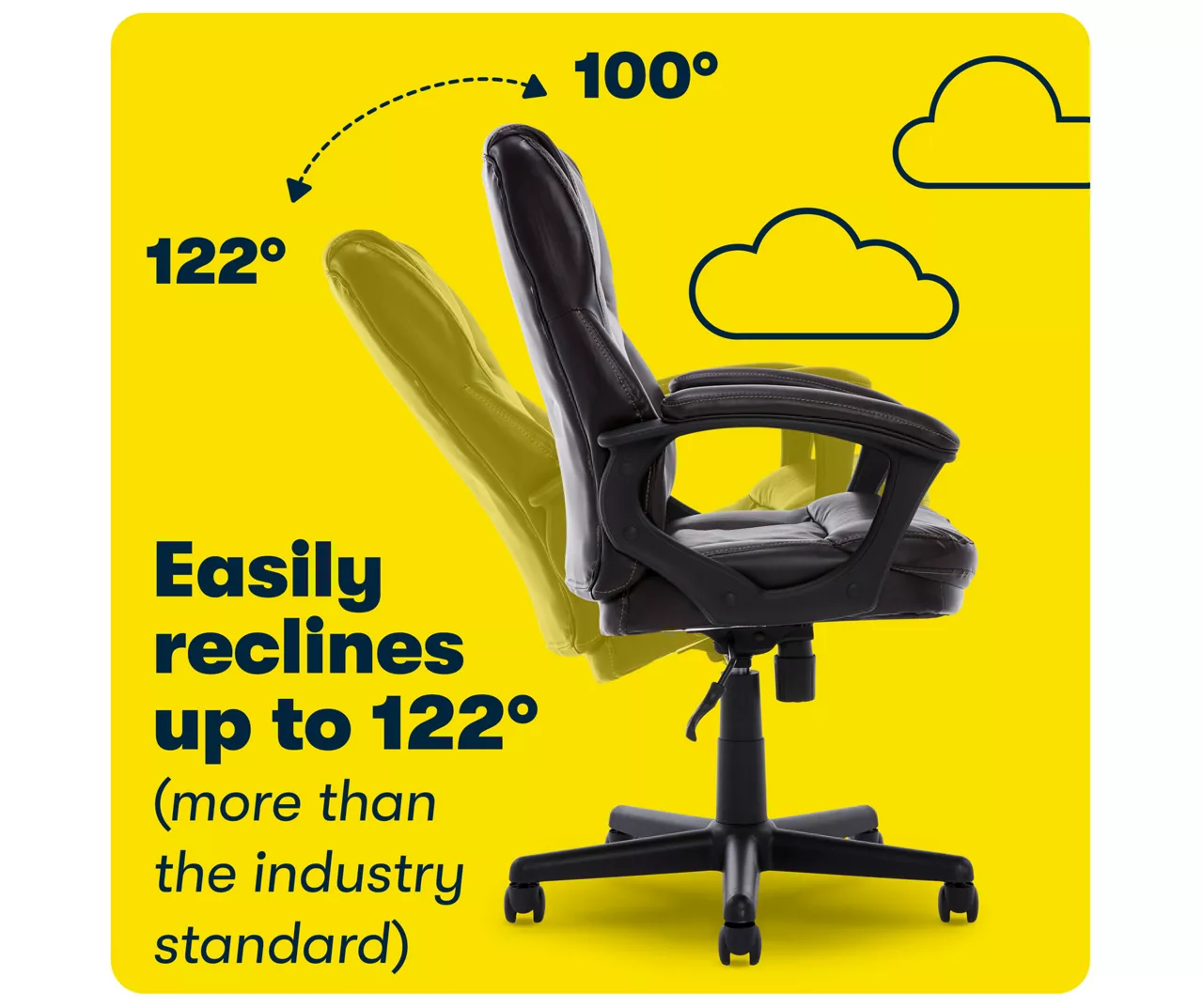 - Pneumatic seat-height lift with adjustable tilt tension knob and recline lock out features