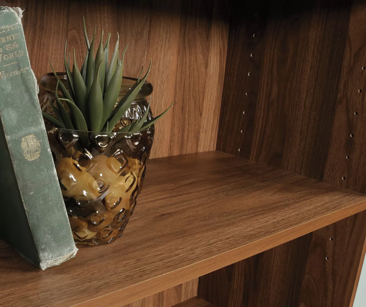 A simple and modern solution to organizing books, tabletop décor and more from a beautiful 5-shelf bookcase from Sauder. The convenient size fits anywhere from a kitchen to a dorm room. This woodgrain brown finish looks great with any style décor and elevates the appearance of your space.